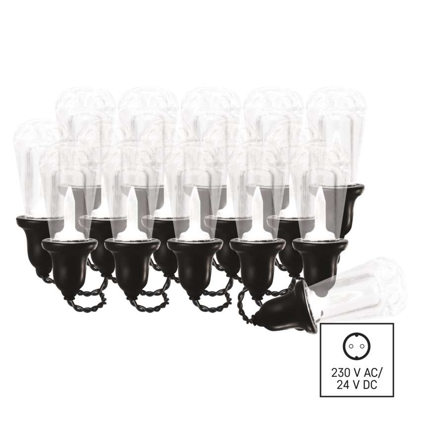LED světelný řetěz – 16x párty žárovky čiré, 7,6 m, venkovní i vnitřní, teplá bílá