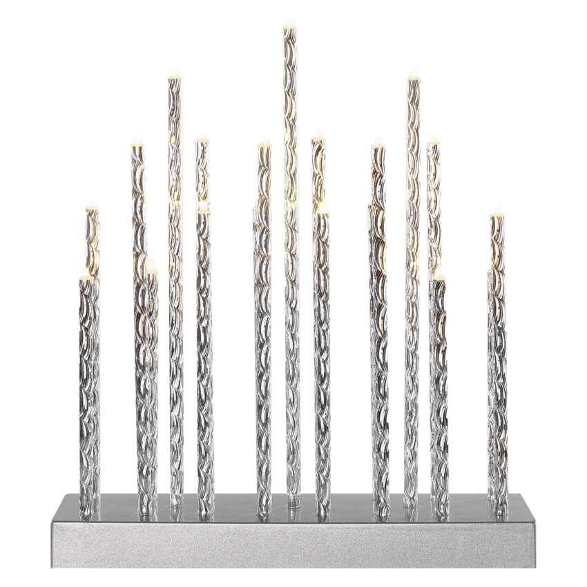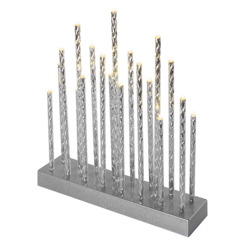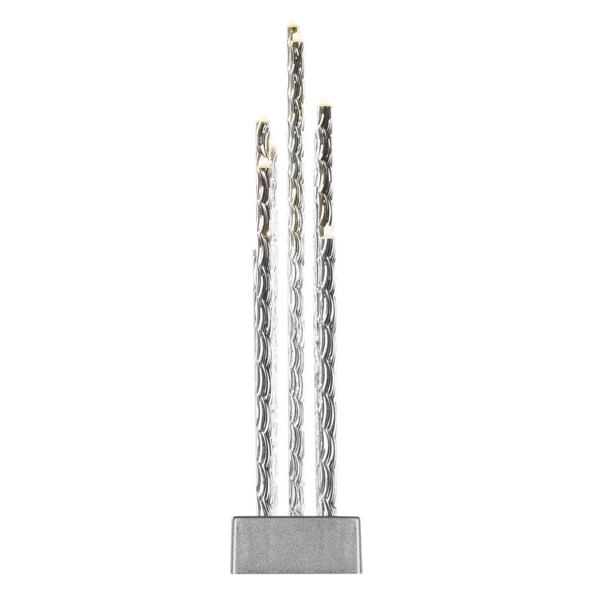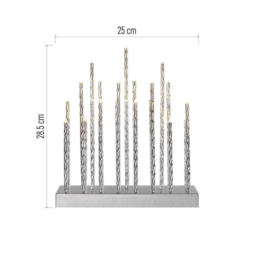 LED svícen stříbrný, 28,5 cm, 3x AA, vnitřní, teplá bílá, časovač