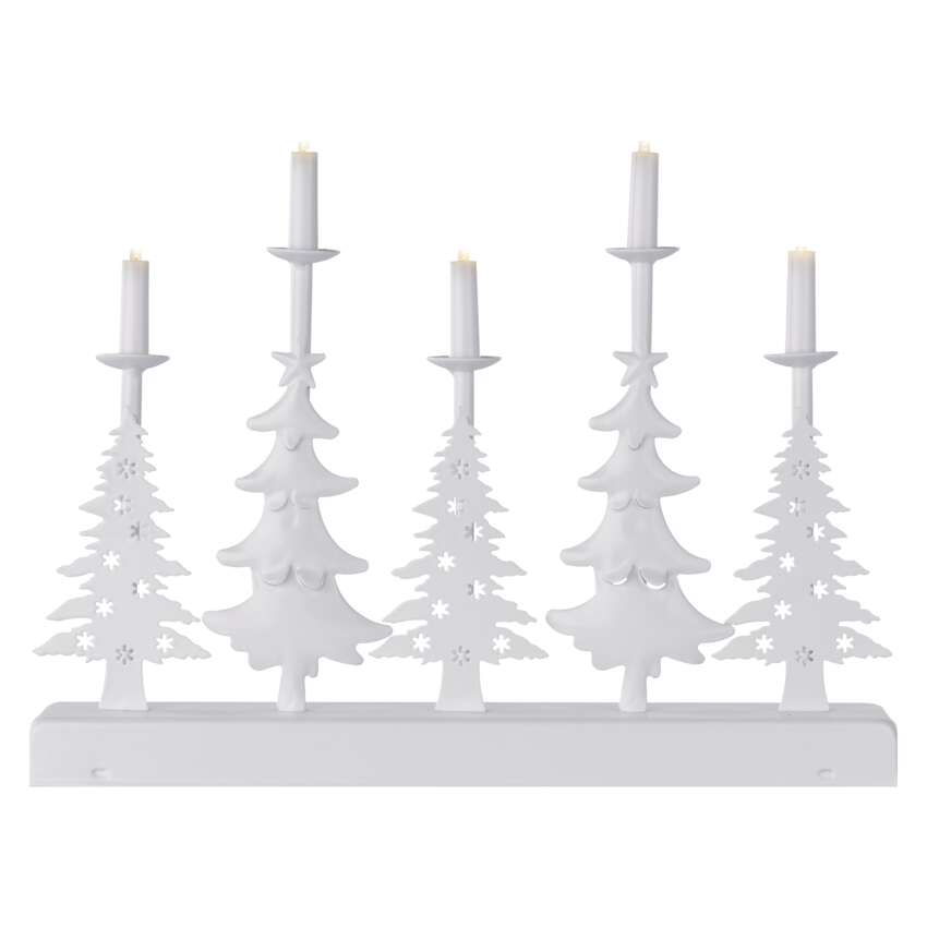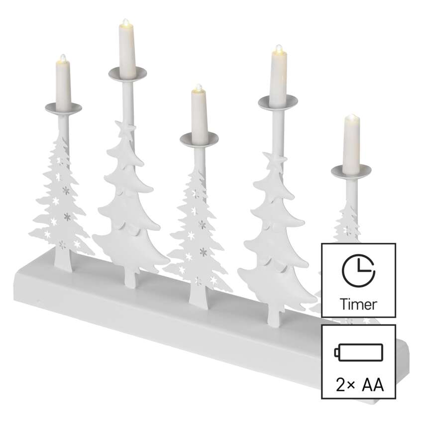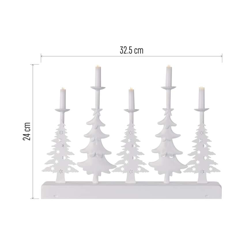LED svícen – vánoční stromy se svíčkami, 24 cm, 2x AA, vnitřní, teplá bílá, časovač