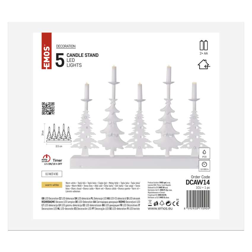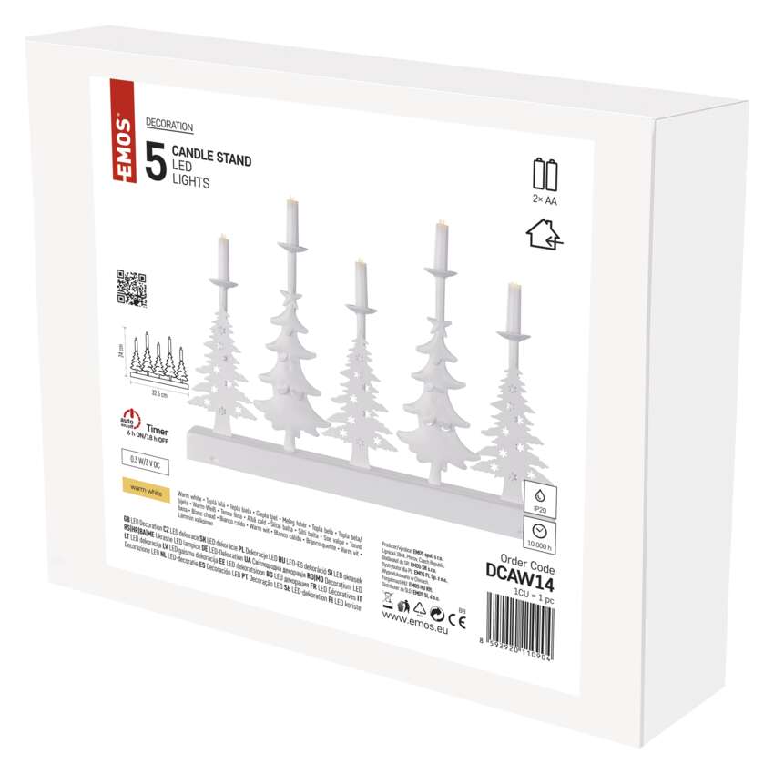 Vánoční LED svícen svým decentním světlem doladí útulnou atmosféru vašeho domova, ať už ho postavíte na sváteční stůl, parapet či poličku. Jeho teplá barva světla v kombinaci s elegantním designem z něj dělají nevšední dekoraci určenou nejen pro vánoční večery. A co je důležité – nechtěných požárů se bát rozhodně nemusíte! Jako zdroj světla využívá místo tradičních svíček energeticky úsporné LED diody napájené z AA baterií.