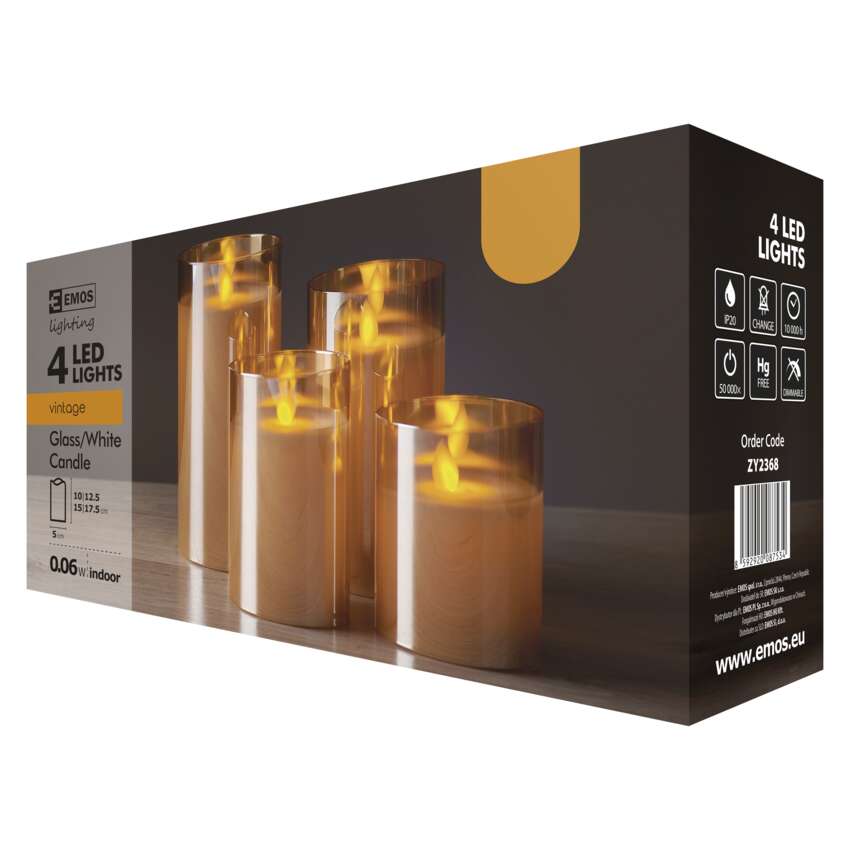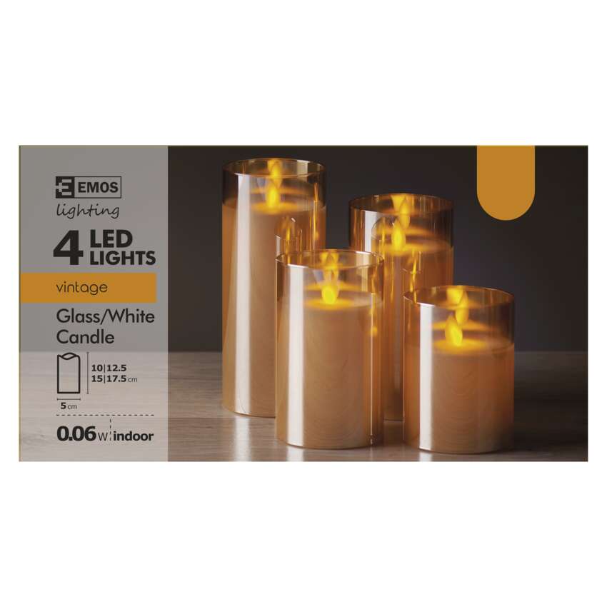 LED svíčky, 5×10/12,5/15/17,5cm, bílé, 2× AA, 4 ks