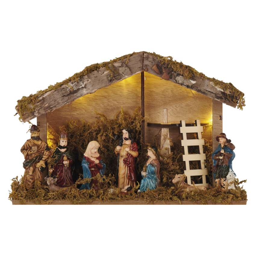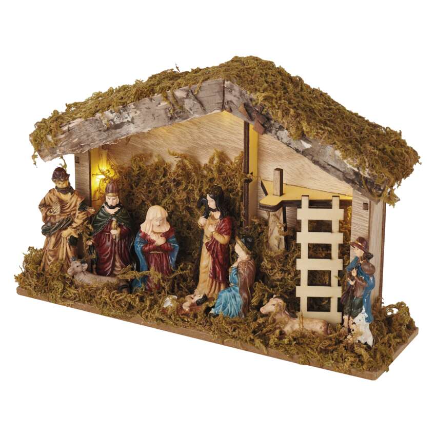 Dřevěné dekorace navozují atmosféru tradičních Vánoc charakteristických vůní perníčků, zvukem vánočních koled a nezaměnitelnou chutí bramborového salátu. Dřevěná dekorace "vánoční betlém" je vybavena příjemným teple bílým osvětlením. Díky napájení pomocí AA baterií ji můžete umístit na libovolné místo ve vašem interiéru a skvěle se bude vyjímat zejména na okenním parapetu, komodě či televizním stolku.