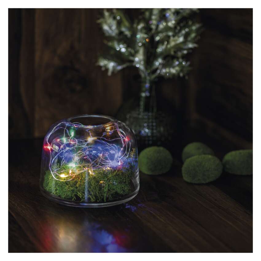 LED vánoční nano řetěz, 1,9 m, 2x AA, vnitřní, multicolor, časovač