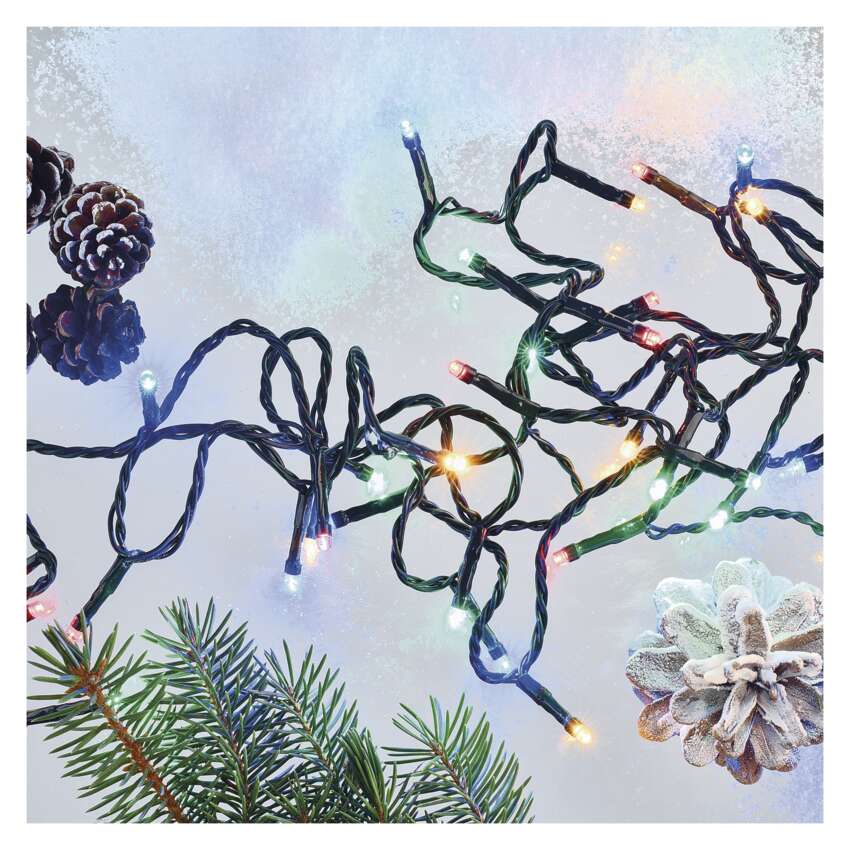 LED vánoční řetěz, 18 m, venkovní i vnitřní, multicolor, časovač