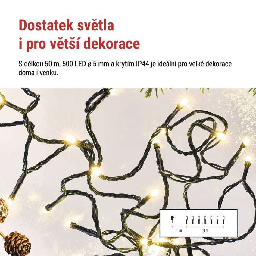 Rozsviťte svůj domov světlem, které přináší klid, harmonii a skutečné kouzlo Vánoc. Tento LED vánoční řetěz v délce 50 metrů s barvou světla teplá bílá vytvoří elegantní a čistý efekt, který skvěle doplní moderní i klasické vánoční dekorace.