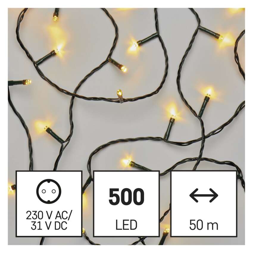 Řetěz obsahuje 500 kvalitních LED diod s příkonem pouhých 3,6 W, čímž se stává vysoce úsporným. Světlo je jasné, rovnoměrné, a přitom šetrné k očím i životnímu prostředí. Životnost LED diod dosahuje až 10 000 hodin svícení, což znamená roky spolehlivého používání bez výměn a starostí.