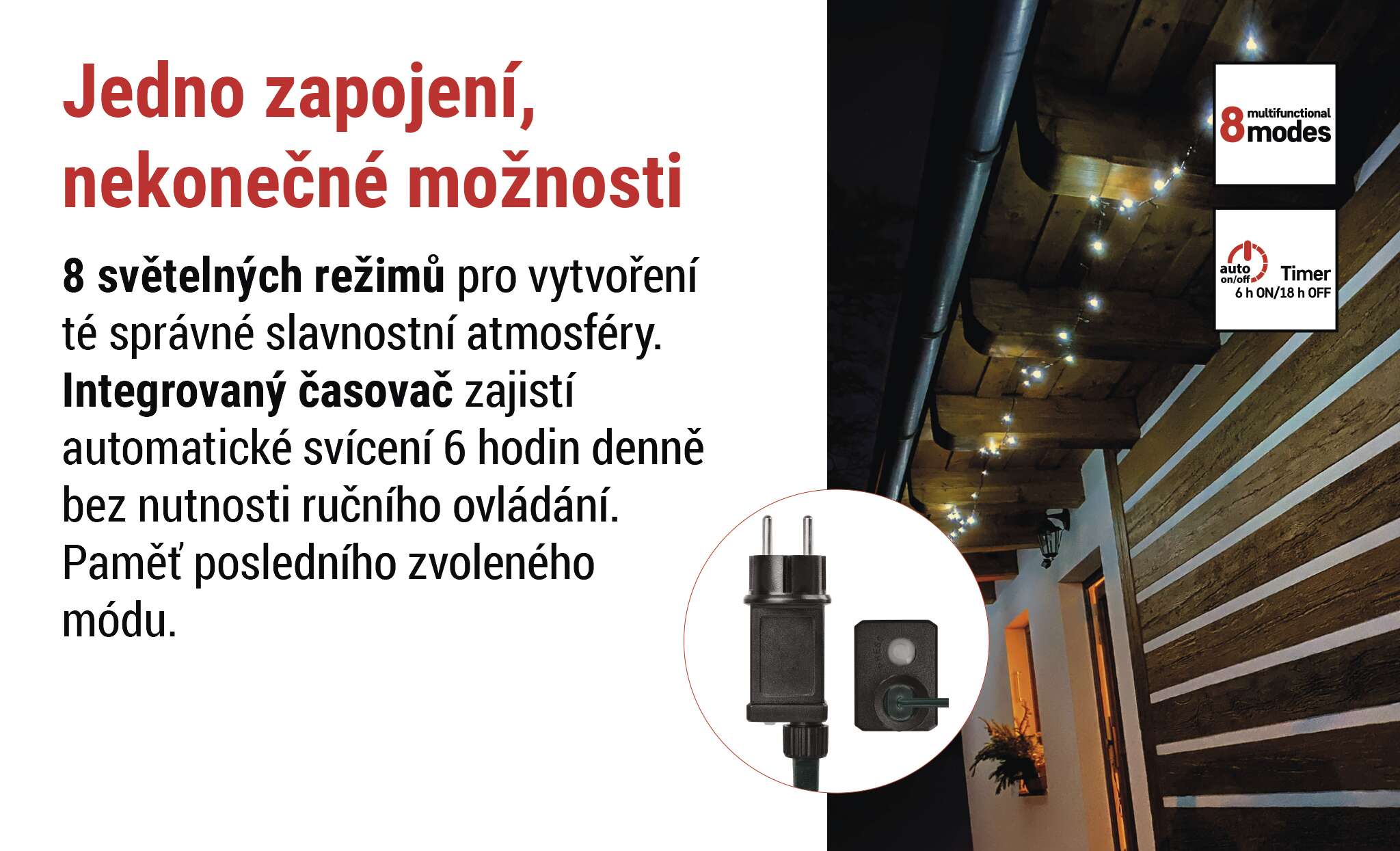 Poslední zvolený režim se automaticky uloží do paměti, takže po opětovném zapnutí se řetěz rozsvítí přesně tak, jak jste si ho nastavili naposledy.
