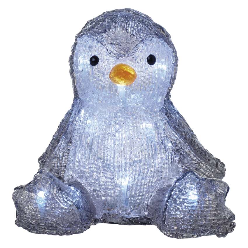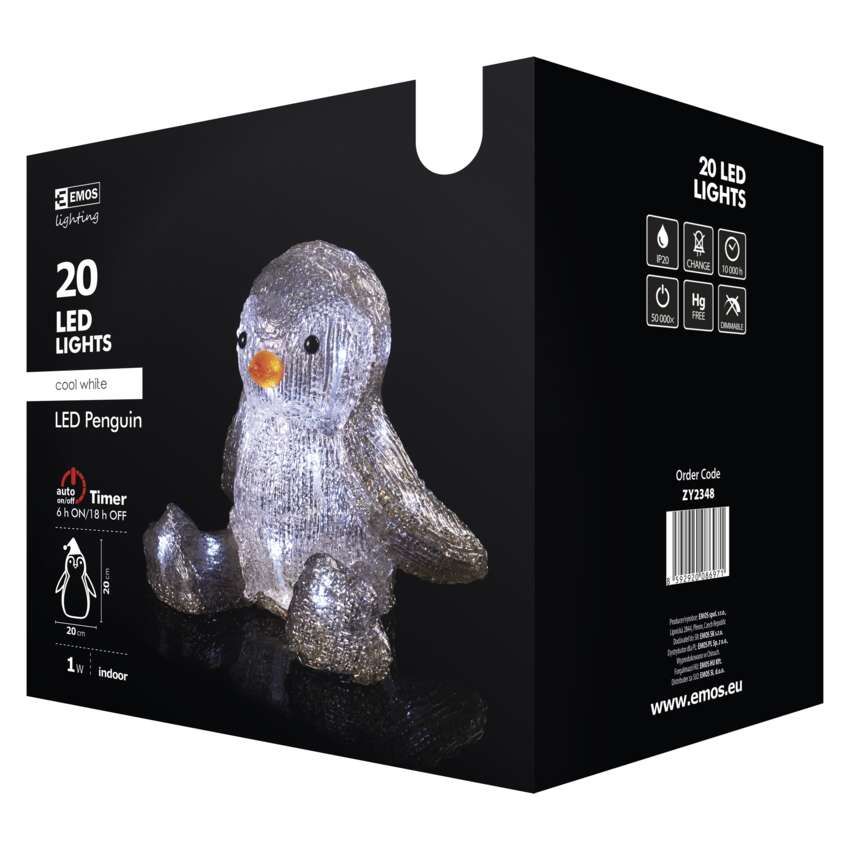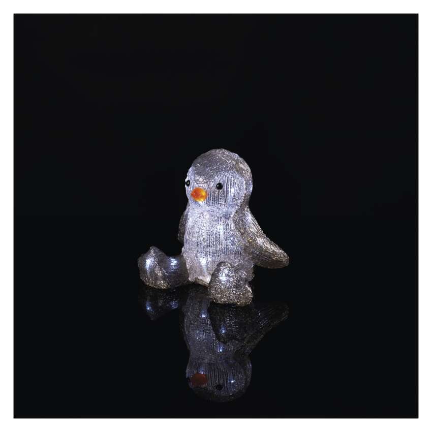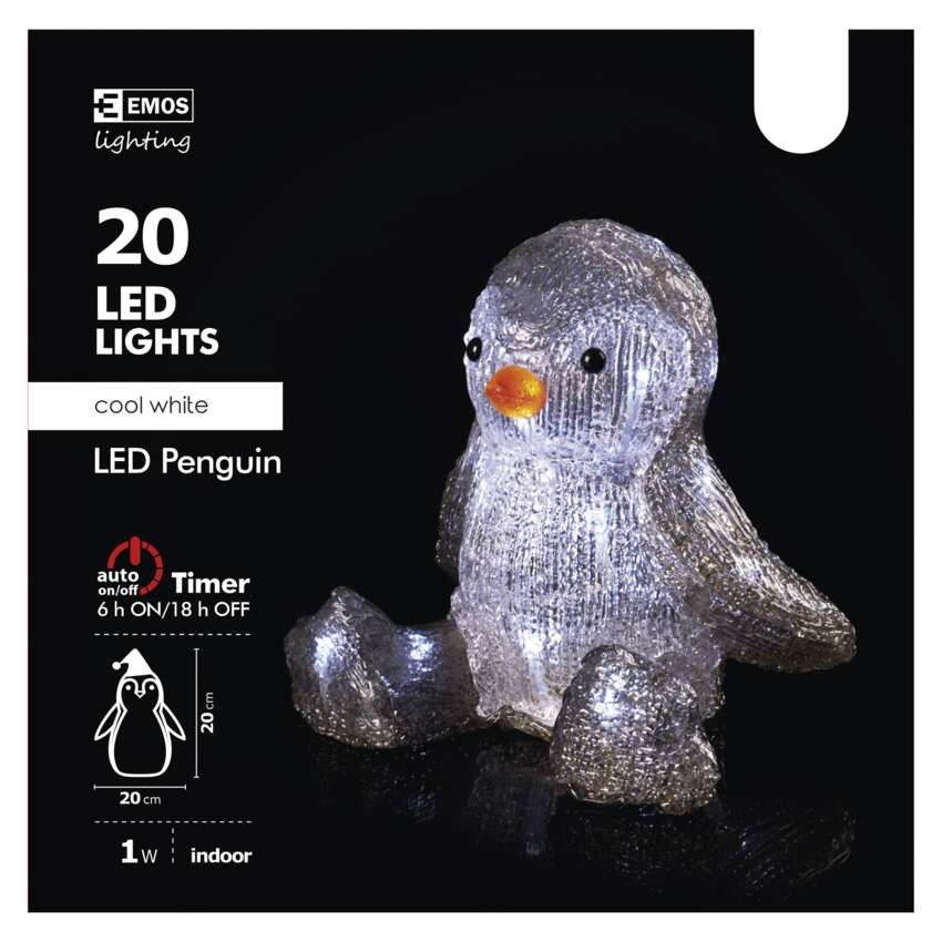 LED vánoční tučňák, 20cm, 3× AA, vnitřní, studená bílá, čas.