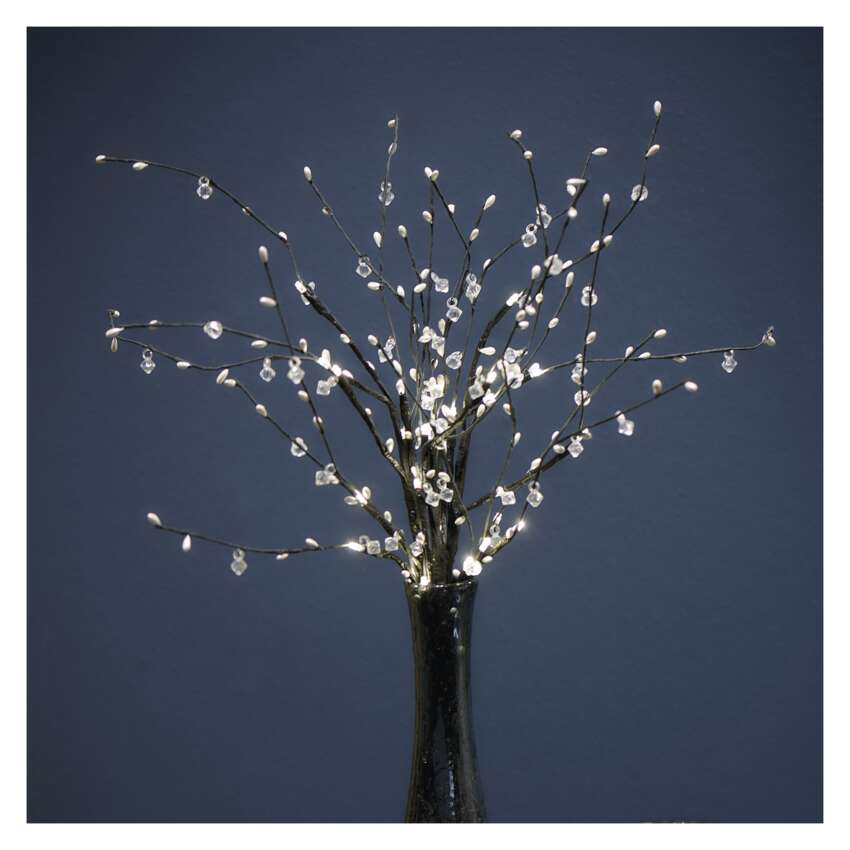 Slavnostně prostřená tabule promění obyčejné posezení ve výjimečnou chvíli – ať už se u stolu sejde celá rodina nebo se rozhodnete strávit příjemný večer s přáteli. Pro všechny tyto chvíle je větvička s perličkami s jemným světlem teplé bílé barvy přesně to pravé pro vytvoření pohodové atmosféry. Můžete ji vložit do vázy nebo zakomponovat do výzdoby stolu či jiného místa ve vašem interiéru a doladit tak vánoční výzdobu k dokonalosti. Díky napájení pomocí AA baterií ji snadno umístíte přesně tam, kde se vám bude líbit nejvíce.