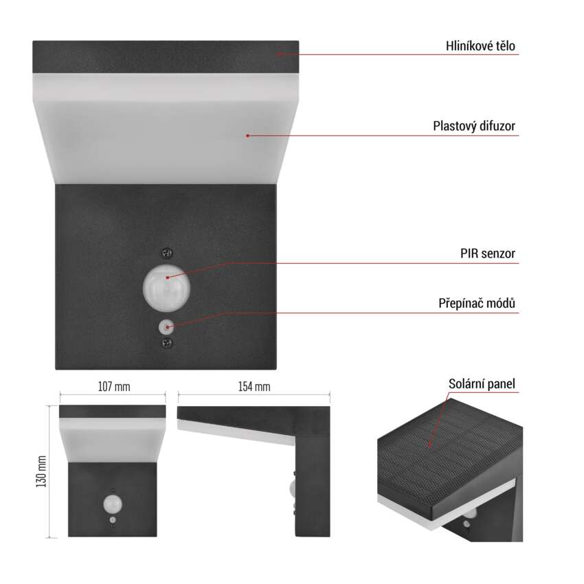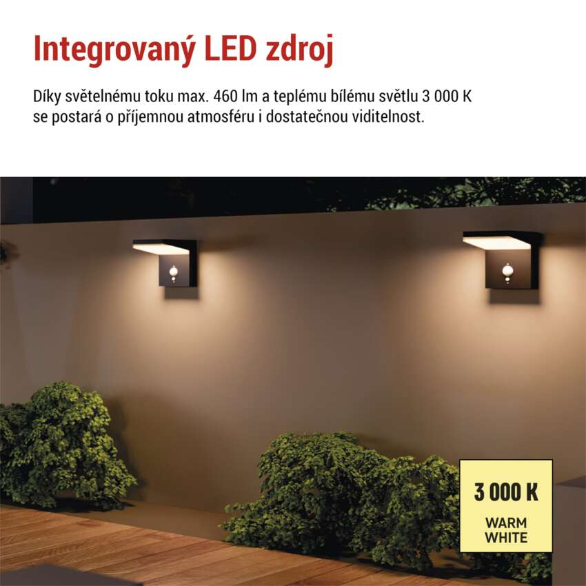 LED zahradní solární nástěnné svítidlo VEREA, čidlo soumraku, 10,7 x 15,4 x 13 cm