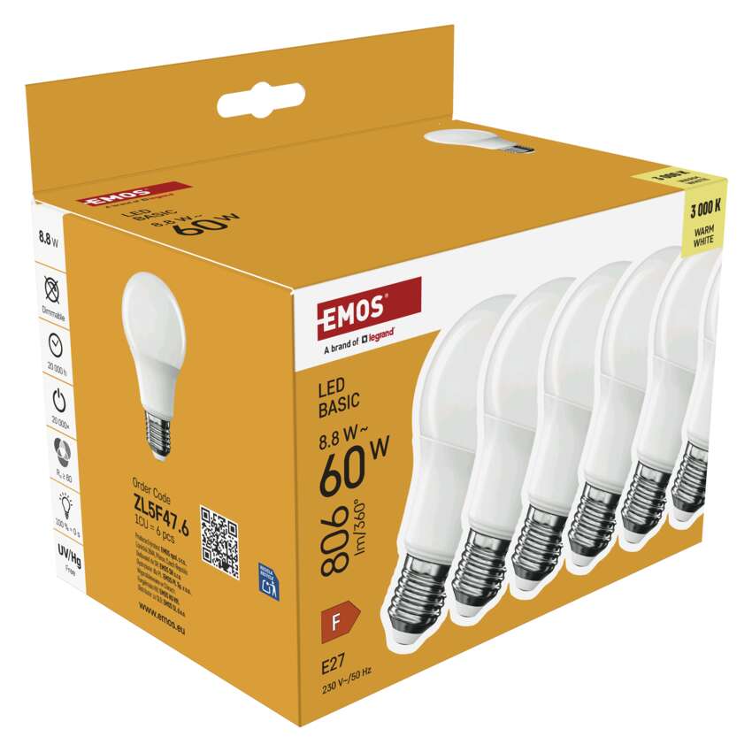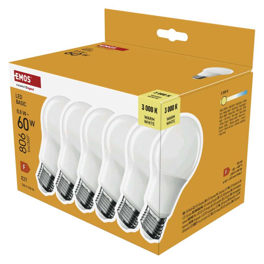 LED žárovka Basic A60 / E27 / 8,8 W (60 W) / 806 lm / teplá bílá