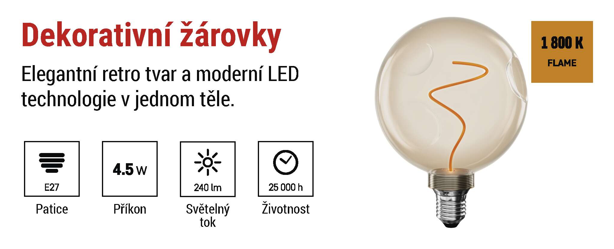 LED žárovka DECO CG125A / E27 / 4,5 W (24 W) / 240 lm / flame