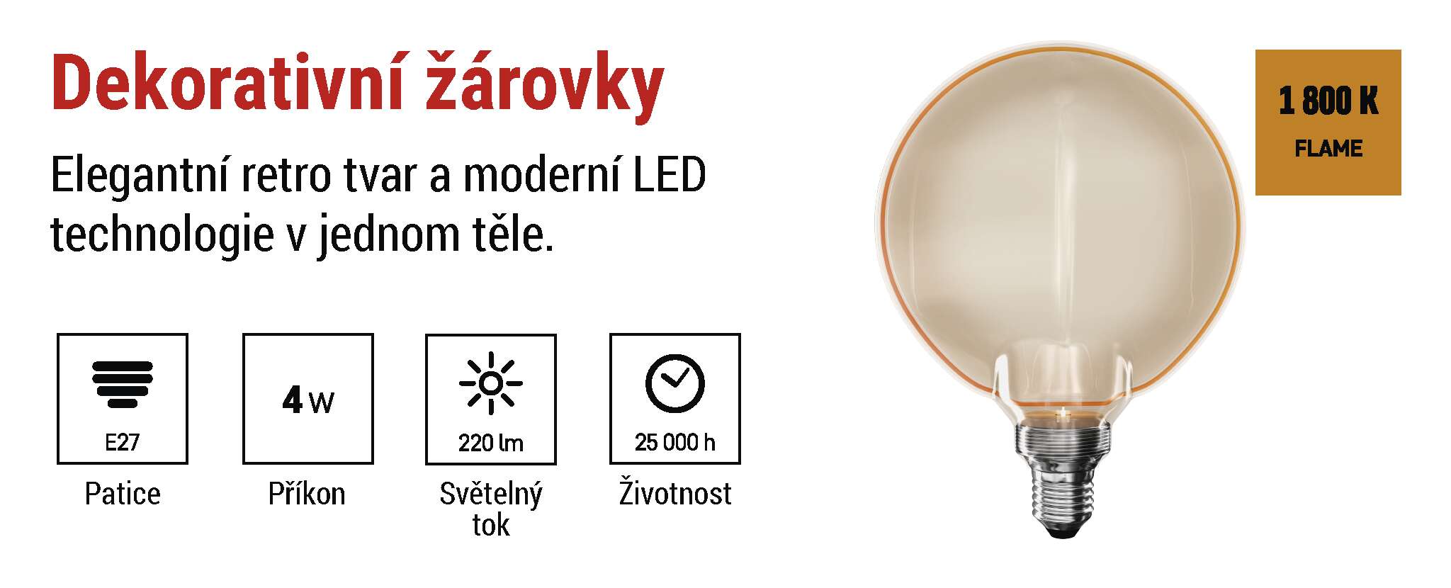 LED žárovka DECO G130OA / E27 / 4 W (22 W) / 220 lm / flame