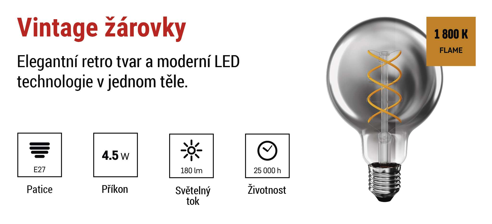 LED žárovka DECO SMOKED G95 / E27 / 4,5 W (19 W) / 180 lm / flame