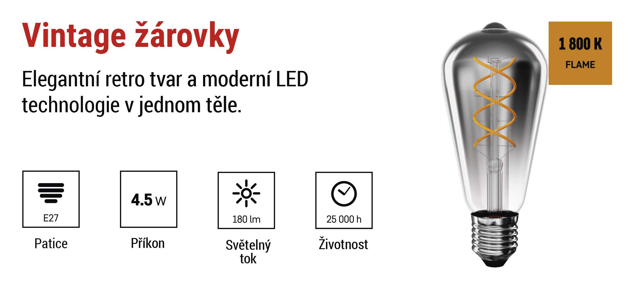 LED žárovka DECO SMOKED ST64 / E27 / 4,5 W (19 W) / 180 lm / flame