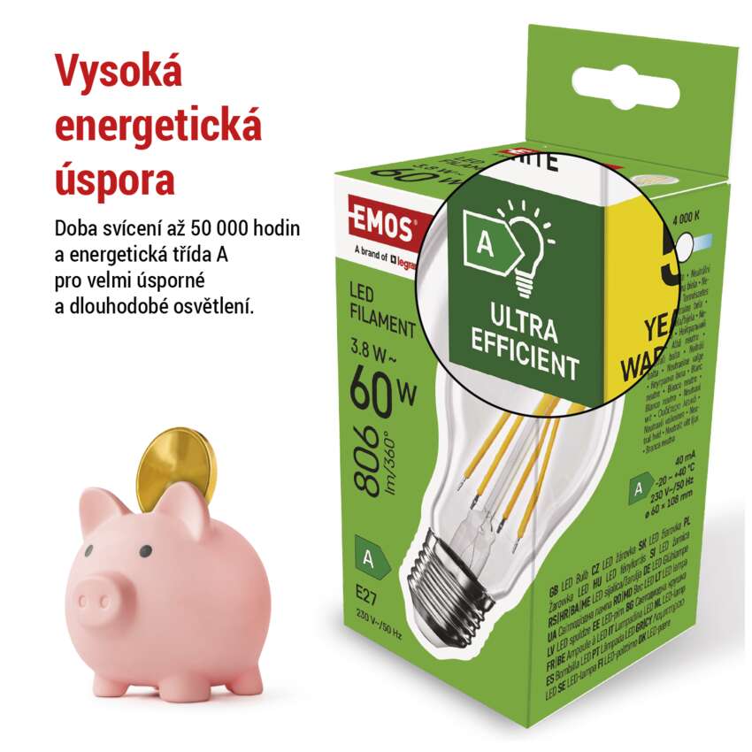 Ultra Efficient – energetická třída A; Úspora energie/peněz; Záruka 5 let; Životnost 50 000 h