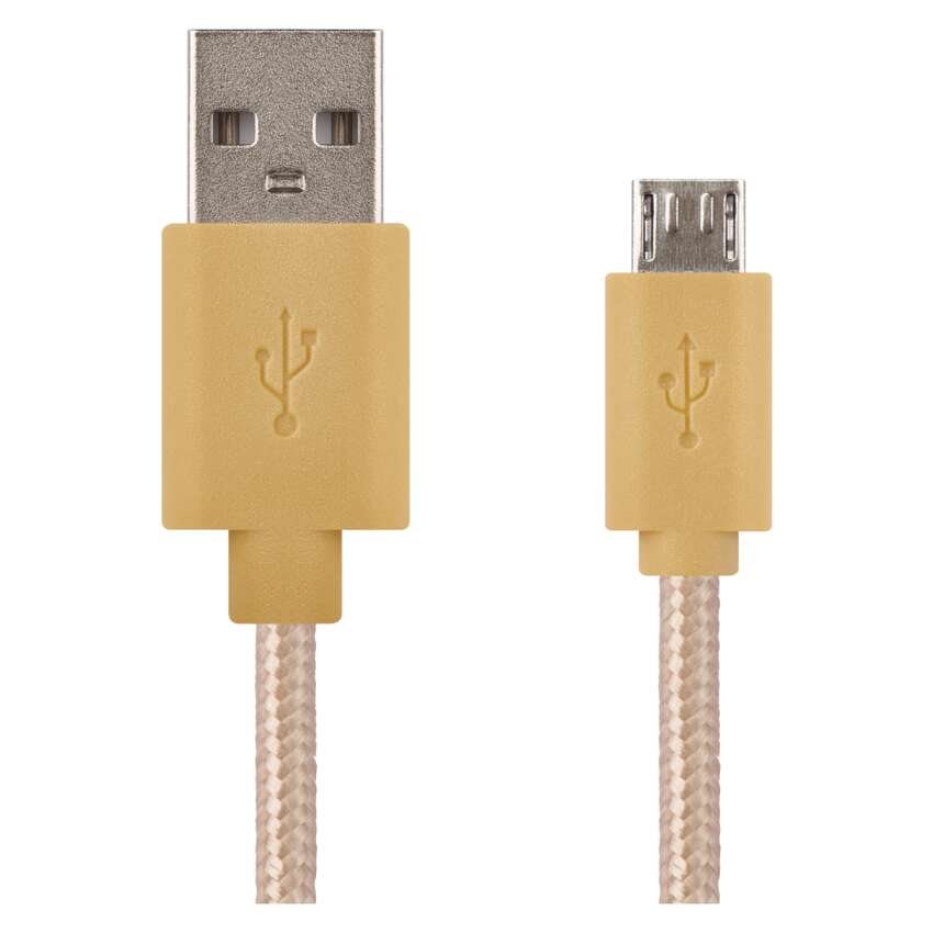 USB kabel v kulatém provedení a zlaté barvě. Textilní opletení. Je vhodný pro mobilní telefony a jiná mobilní zařízení.