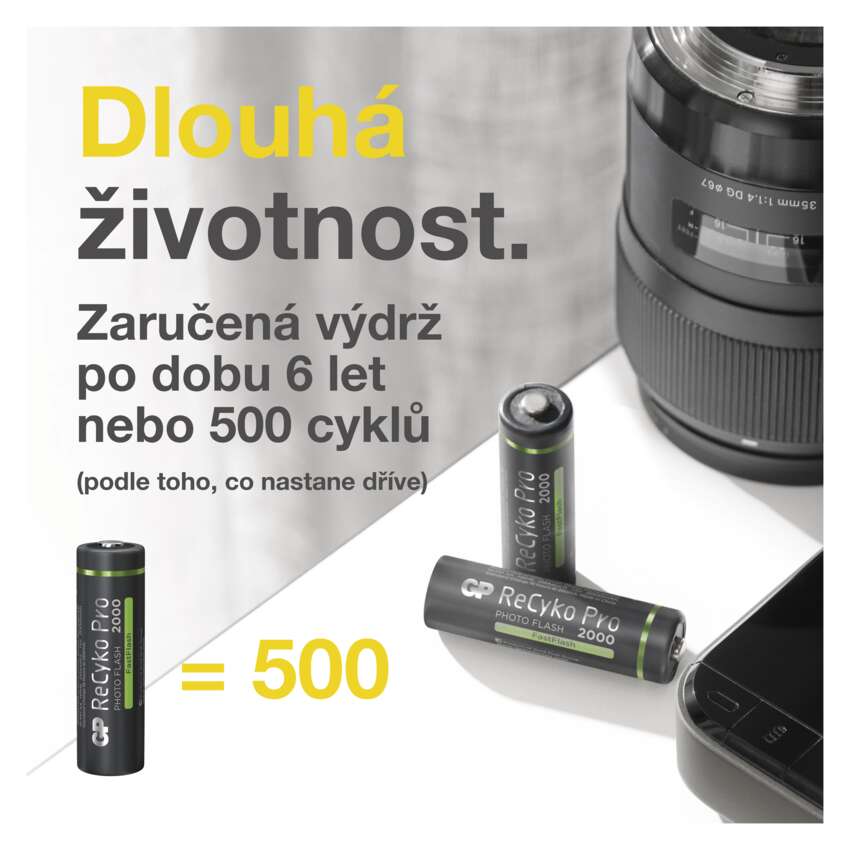 Používání nabíjecích baterií GP ReCyko Pro Photo Flash je pohodlné, ekologické a finančně výhodné. Baterie vám totiž vydrží několik let, aniž by slábl jejich výkon. I po 500 nabitích a vybitích si udrží většinu své kapacity. V porovnání s ekvivalentní dobou používání jednorázových baterií tak ušetříte nemalé finanční prostředky.