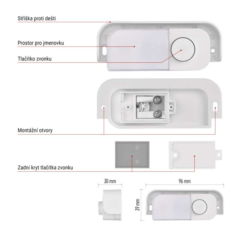 | rozměr tlačítka | 96 × 30 × 39 mm |