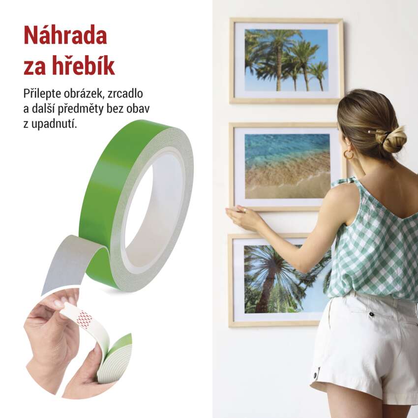 - Pomocí pěnové pásky lze zavěsit i těžké věci bez obav z pádu