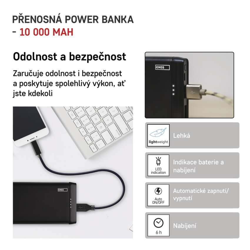 Powerbanka EMOS Alpha 10S, 10 000 mAh, 10 W, černá