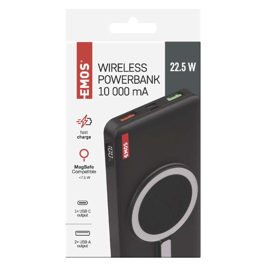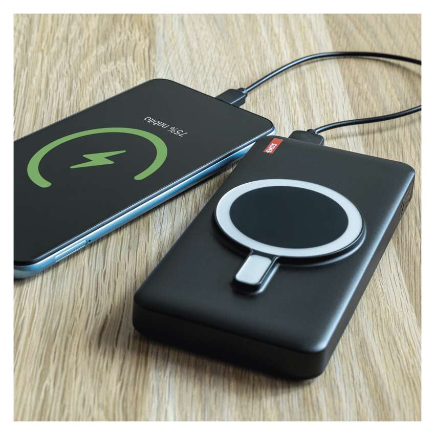 Powerbanka EMOS WI 1021D je kompatibilní s nejnovější patentovanou technologií MagSafe od Apple. Takto vybavené telefony se tak díky magnetu snadno přichytí k povrchu powerbanky a docílí tak snadného a stabilního spojení během nabíjení. A pro ty, jejichž telefon není vybaven tímto magnetickým mechanismem, je součástí balení samolepící magnetický kroužek.
