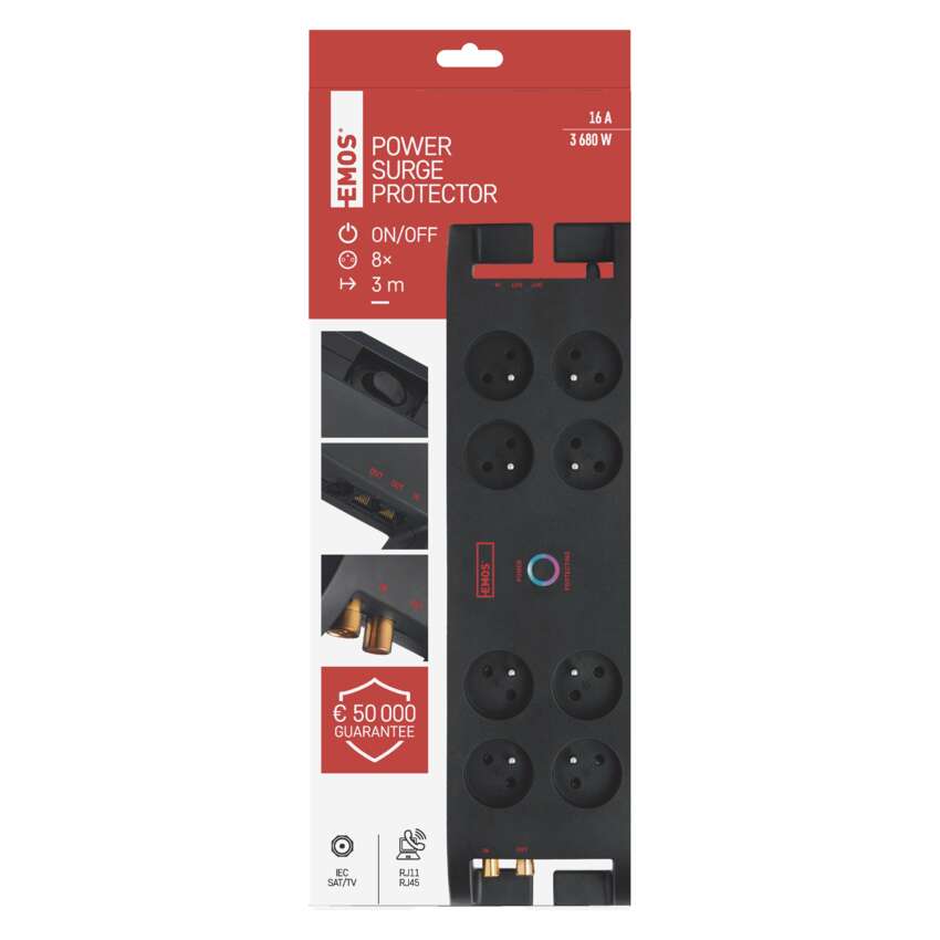 Přepěťová ochrana dokáže spolehlivě ochránit 8 zásuvek typu 2P+PE, koaxiální anténní vstup, faxovou či telefonní linku nebo síťový LAN kabel (RJ11, RJ45) před klasickým přepětím v síti a zvládne zastavit špičku na úrovni 1,7 kV (absorpce 1 800 J). RJ11/RJ45 konektor zajistí ochranu datových a telefonních linek. Nesmí tak chybět v žádné domácnosti, zejména s dražší elektronikou.