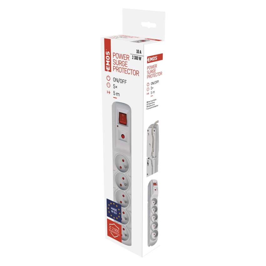 Přepěťová ochrana – 5 zásuvek, 5m, šedá