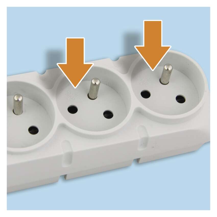 Ta pojistka slouží pouze pro případy, že je do zásuvek zapojena větší zátěž než 10A, potom tato pojistka vypne napájení a následně se musí resetovat.