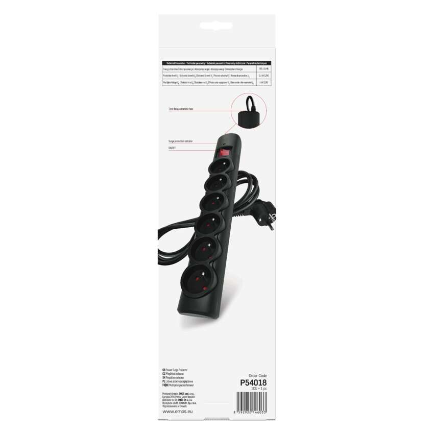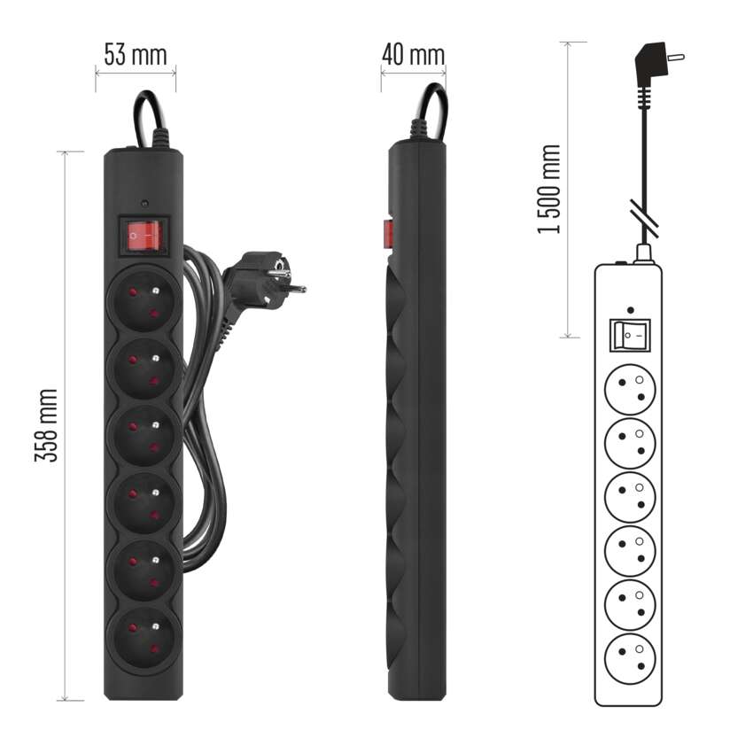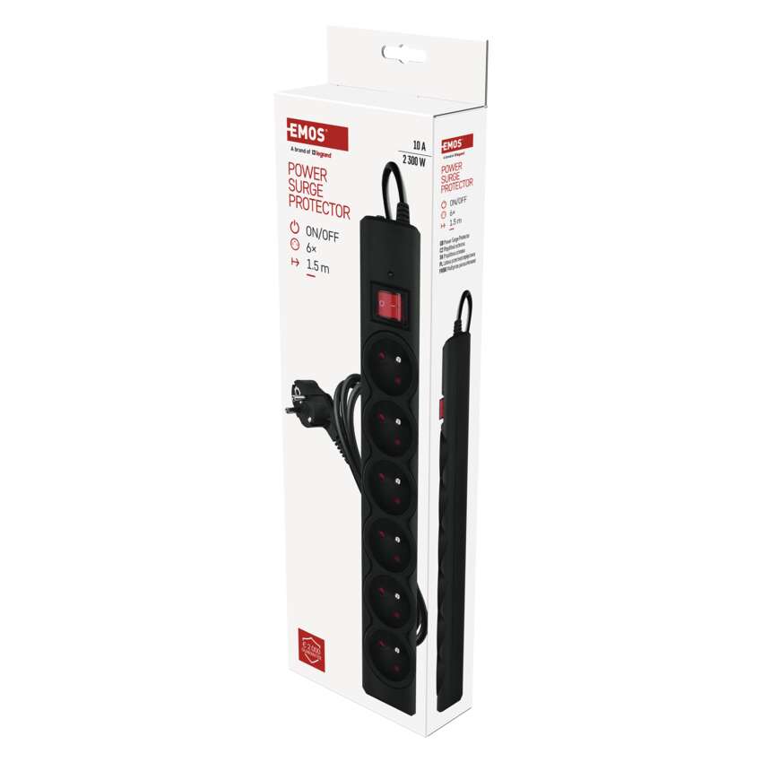 Přepěťová ochrana – 6 zásuvek, 1,5 m, černá