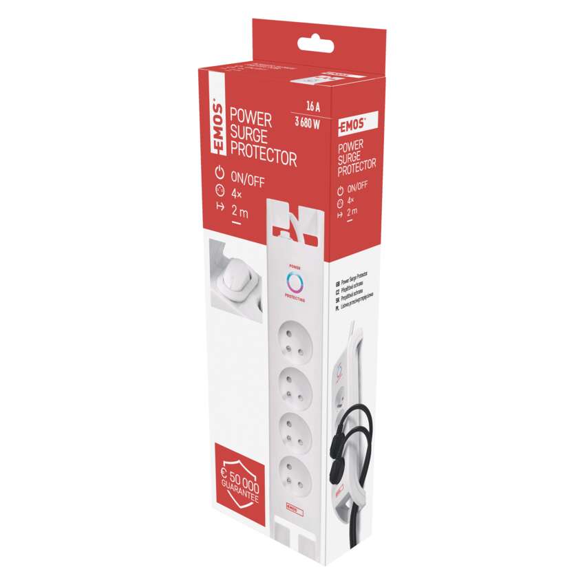 Přepěťová ochrana 900J – 4 zásuvky, 2m, bílá