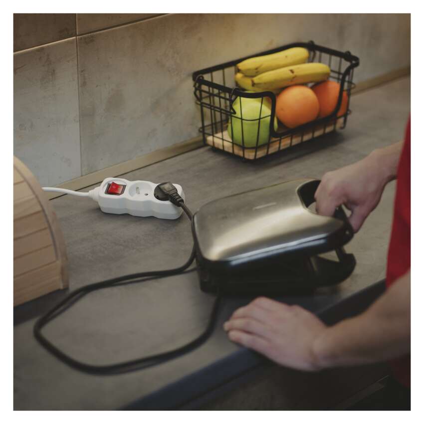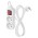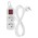 Bílý prodlužovací přívod, 2 zásuvky s dětskými clonkami, vypínačem, délkou 1,4 m. Průřezem vodiče 1 mm2. Vhodný pro maximální zátěž 16 A max.Při montáži na stěnu je nutné použít vrut se zápustnou hlavou PZ max. průměr 2,5–3 mm, délka 30–40 mm. V případě použití jiného průměru hrozí poškození plastové části otvoru. Pokud dojde k poškození plastové části otvoru, prodlužovací přívod nepoužívejte.