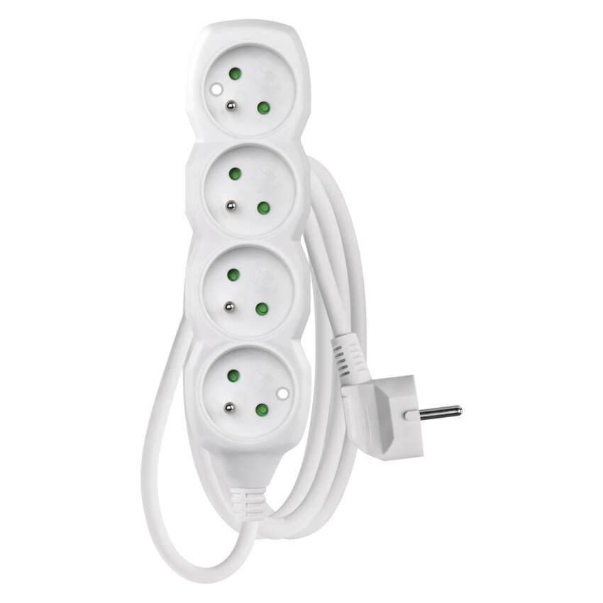 Bílý prodlužovací přívod, 4 zásuvka s délkou 1,5 m a průřezem vodiče 1 mm2. Vhodný pro maximální zátěž 16 A max.Prodlužovací přívod 1,5 m na 230 V~ slouží k prodloužení elektrické energie tam, kam pevná zásuvka nedosáhne.Při montáži na stěnu je nutné použít vrut se zápustnou hlavou PZ max. průměr 2,5–3 mm, délka 30–40 mm. V případě použití jiného průměru hrozí poškození plastové části otvoru. Pokud dojde k poškození plastové části otvoru, prodlužovací přívod nepoužívejte.