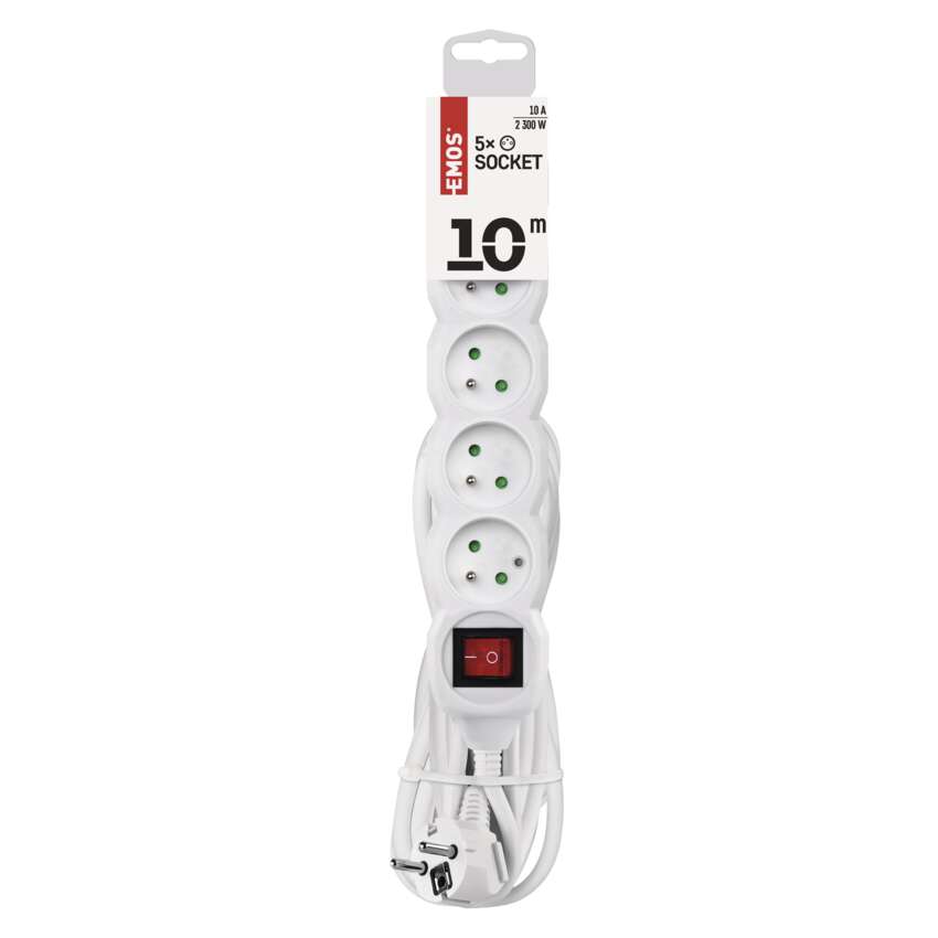 Prodlužovací kabel 10 m / 5 zásuvek / s vypínačem / bílý / PVC / 1 mm2