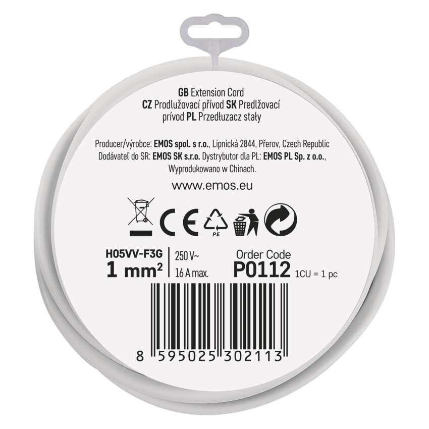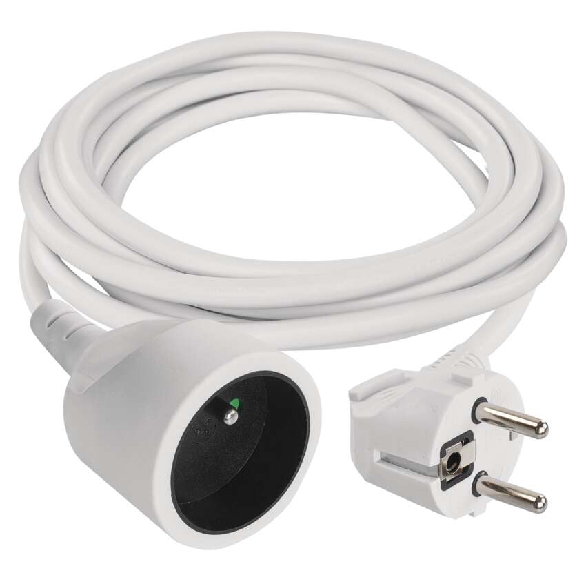 Bílý prodlužovací přívod s jednou zásuvkou - spojka, délkou 2 m a průřezem vodiče 1 mm2. Vhodný pro maximální zátěž 16 A max.Prodlužovací přívod 2 m na 230 V~ slouží k prodloužení elektrické energie tam, kam pevná zásuvka nedosáhne.