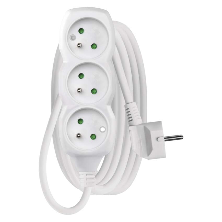 Bílý prodlužovací přívod, 3 zásuvka s délkou 3 m a průřezem vodiče 1 mm2. Vhodný pro maximální zátěž 10 A max.Prodlužovací přívod 3 m na 230 V~ slouží k prodloužení elektrické energie tam, kam pevná zásuvka nedosáhne.Při montáži na stěnu je nutné použít vrut se zápustnou hlavou PZ max. průměr 2,5–3 mm, délka 30–40 mm. V případě použití jiného průměru hrozí poškození plastové části otvoru. Pokud dojde k poškození plastové části otvoru, prodlužovací přívod nepoužívejte.