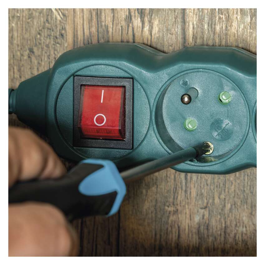 Při montáži na stěnu je nutné použít vrut se zápustnou hlavou PZ max. průměr 2,5–3 mm, délka 30–40 mm. V případě použití jiného průměru hrozí poškození plastové části otvoru. Pokud dojde k poškození plastové části otvoru, prodlužovací přívod nepoužívejte.