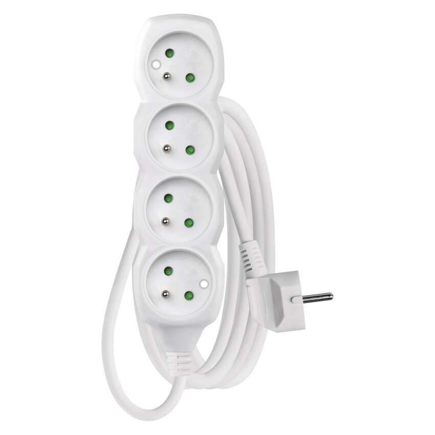 Bílý prodlužovací přívod, 4 zásuvka s délkou 3 m a průřezem vodiče 1 mm2. Vhodný pro maximální zátěž 10 A max.Prodlužovací přívod 3 m na 230 V~ slouží k prodloužení elektrické energie tam, kam pevná zásuvka nedosáhne.Při montáži na stěnu je nutné použít vrut se zápustnou hlavou PZ max. průměr 2,5–3 mm, délka 30–40 mm. V případě použití jiného průměru hrozí poškození plastové části otvoru. Pokud dojde k poškození plastové části otvoru, prodlužovací přívod nepoužívejte.