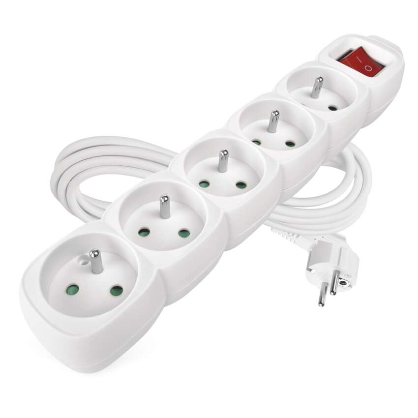 Prodlužovací kabel 3 m / 5 zásuvek / s vypínačem / bílý / PVC / 1,5 mm2