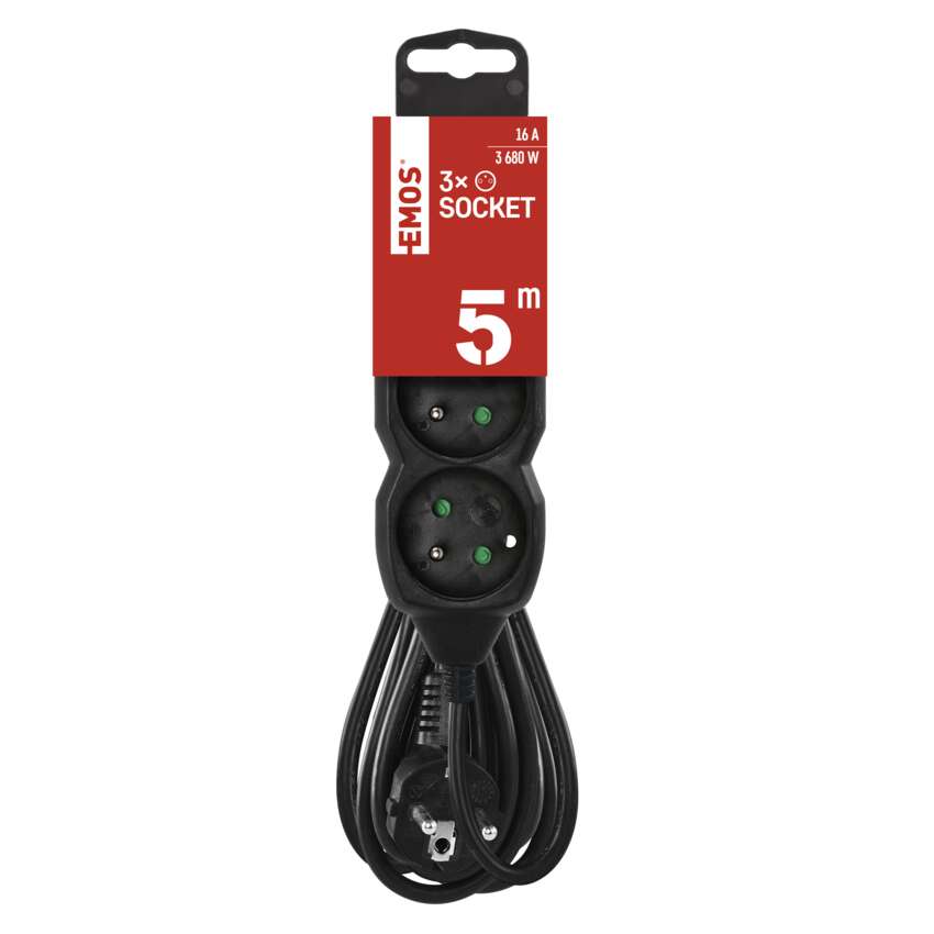 Prodlužovací kabel 5 m / 3 zásuvky / černý / PVC / 1,5 mm2