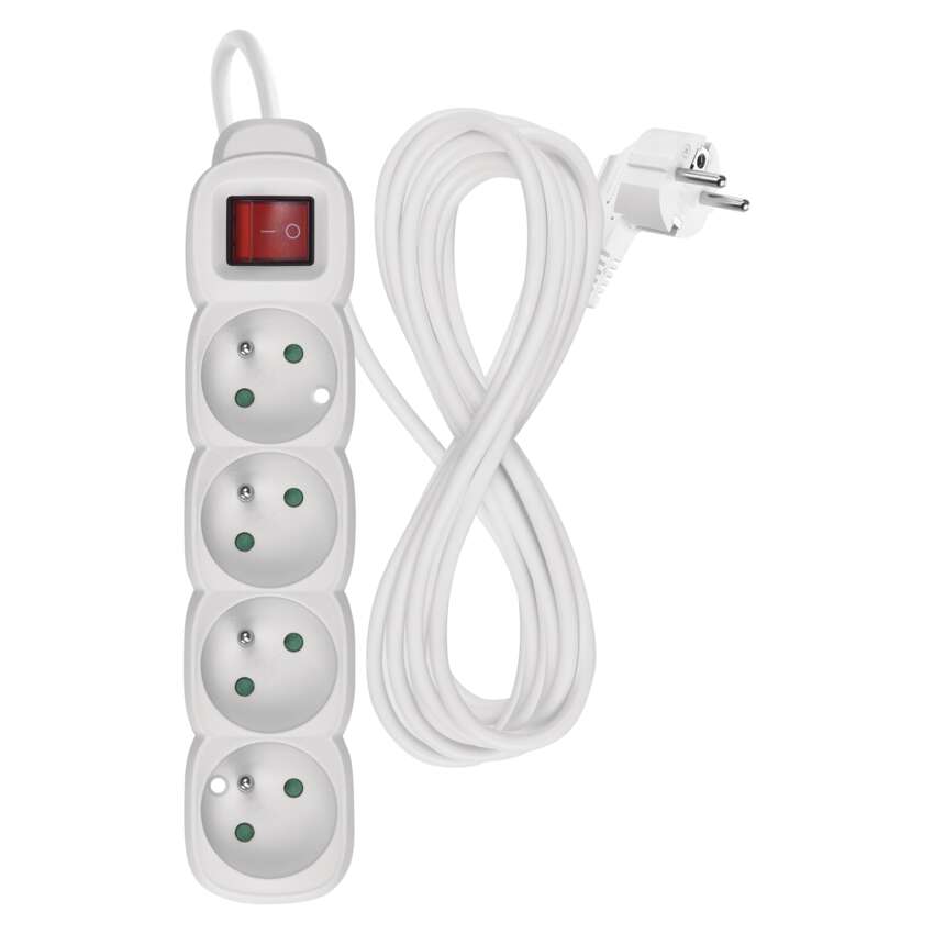 Prodlužovací kabel 5 m / 4 zásuvky / s vypínačem / bílý / PVC / 1,5 mm2