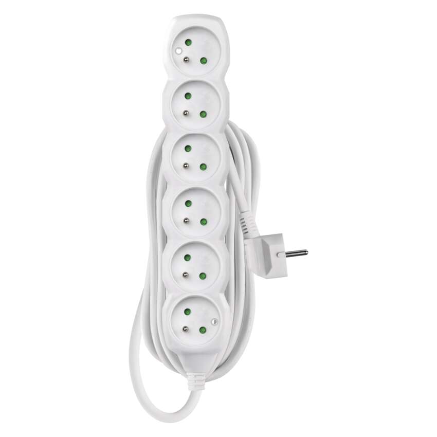 Prodlužovací kabel 5 m / 6 zásuvek / bílý / PVC / 1 mm2