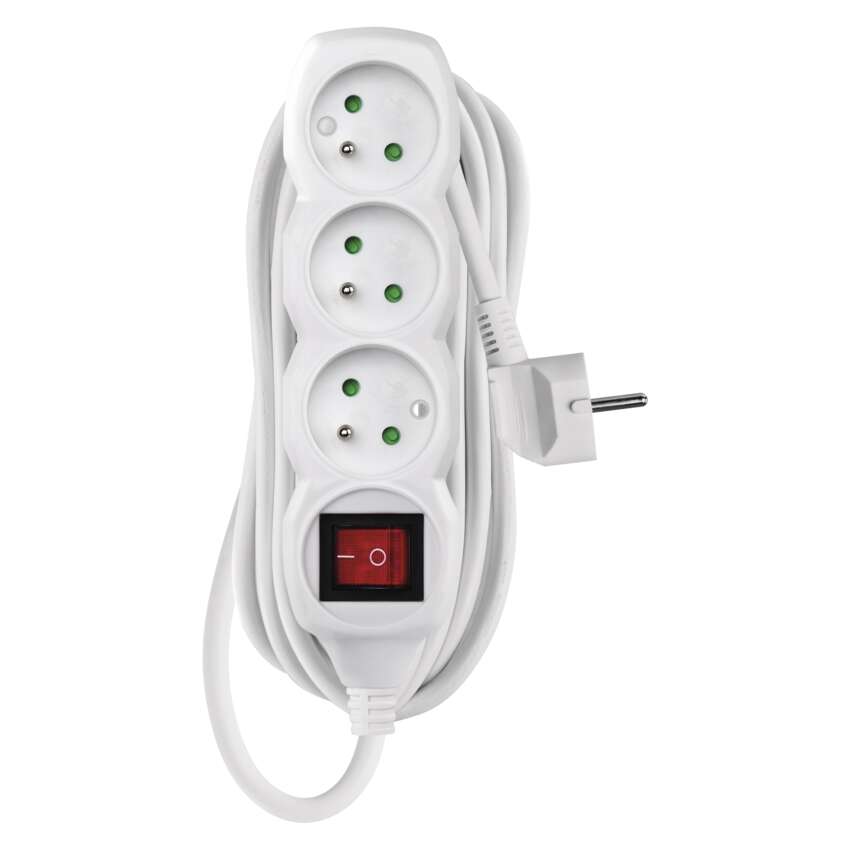 Prodlužovací kabel 7 m / 3 zásuvky / s vypínačem / bílý / PVC / 1 mm2