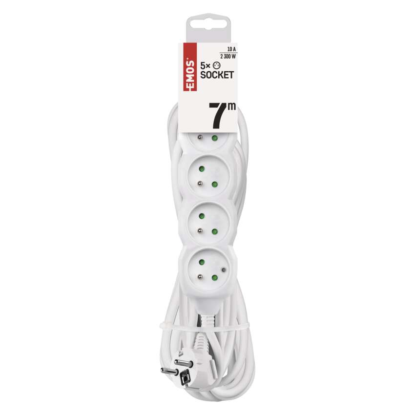Prodlužovací kabel 7 m / 5 zásuvek / bílý / PVC / 1 mm2