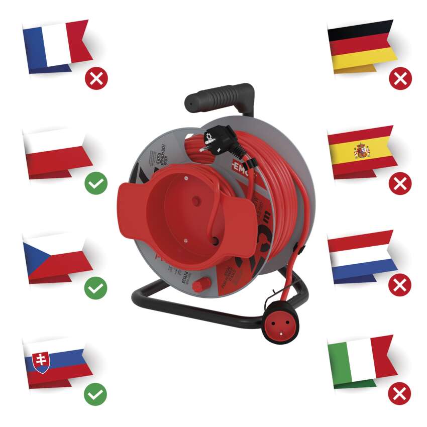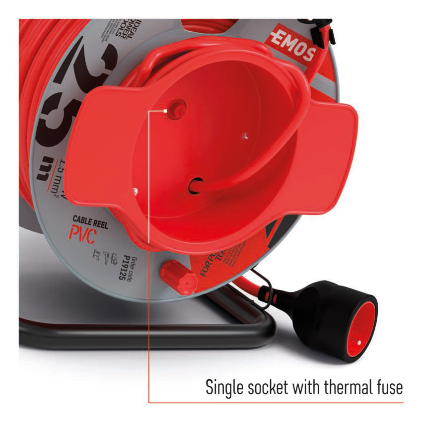Prodlužovací kabel na bubnu 25 m / 1 zásuvka / červený / PVC / 230 V / 1,5 mm2
