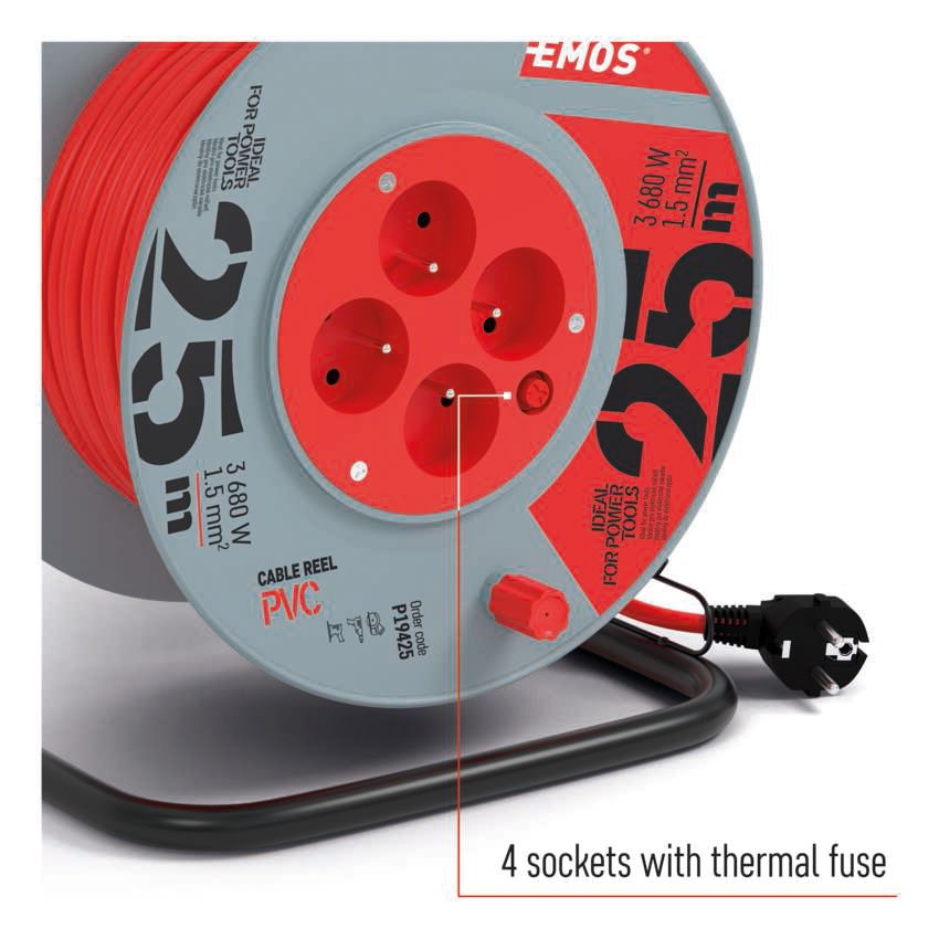 Dnes více než kdy dřív platí, že čas jsou peníze. Proto ho nemarněte s pracovním nářadím, které za to nestojí. Vybavte se jen takovým, které má oproti ostatním něco navíc. EMOS prodlužovací kabel 25 m vám nabízí 4 zásuvky, tepelnou pojistku, brzdu, cívku z téměř nerozbitného ABS plastu (odolá nechtěným pádům) a kovový rám. Když se o něj budete dobře starat, rád vám bude sloužit na doživotí.
