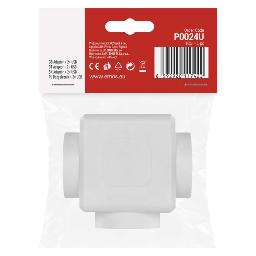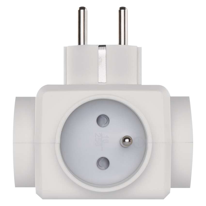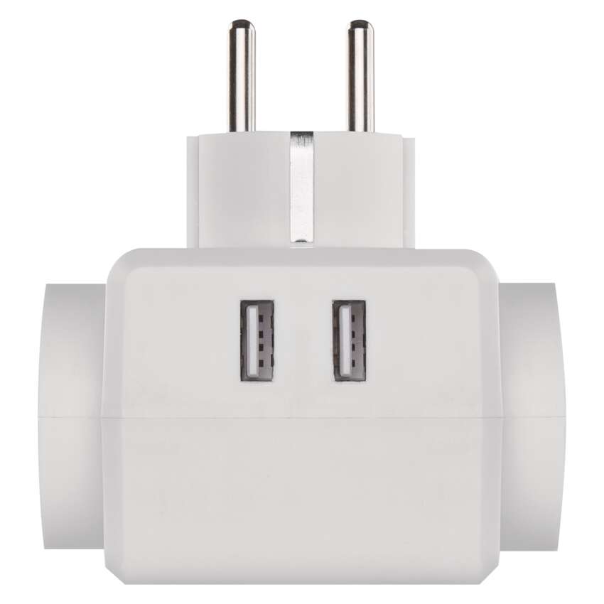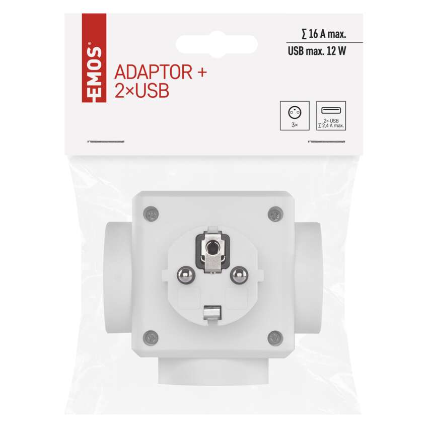 Adaptor trojnásobný rozbočovací s USB výstupem. Max. ∑16 A. 2× USB ∑2,4 A max.