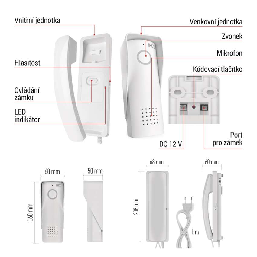 | rozměr dveřní stanice | 160 × 60 × 50 mm |