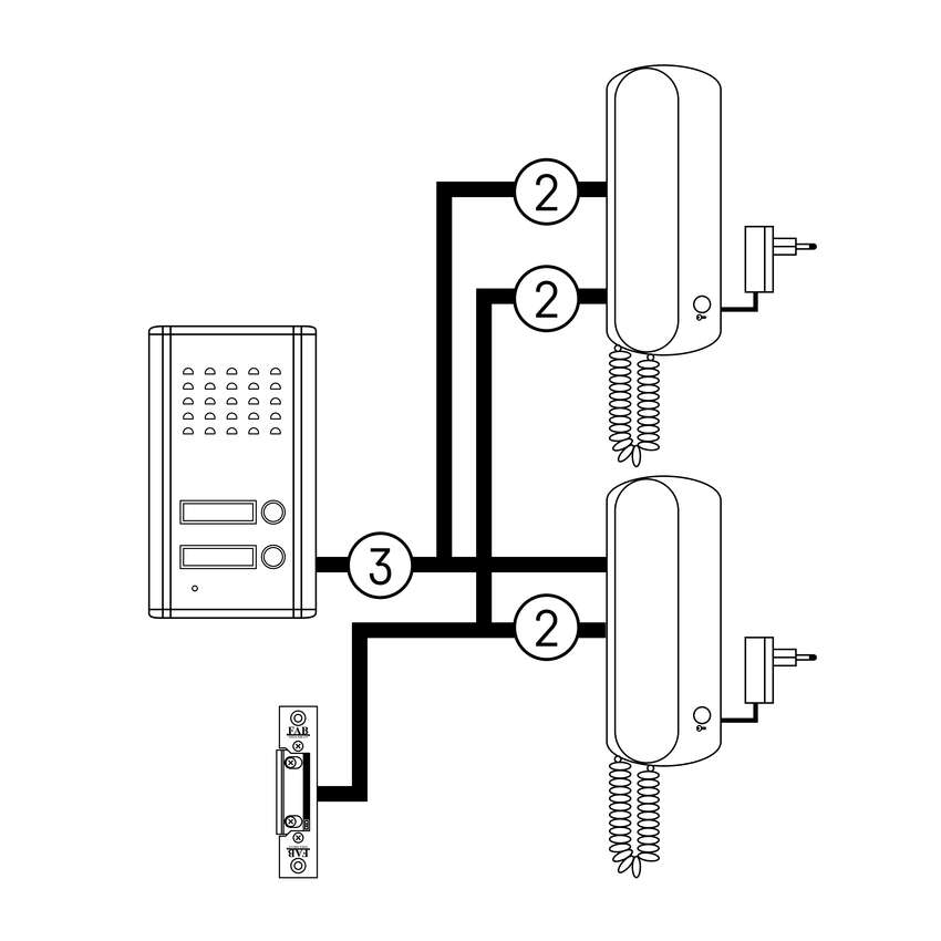 Sada domovního audiotelefonu H1086, 2 účastníci