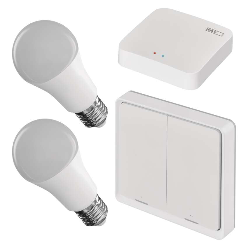 Sada GoSmart: 2x LED žárovka E27 / 11W / RGB / Zigbee, 1x ovladač scén, 1x ZigBee brána